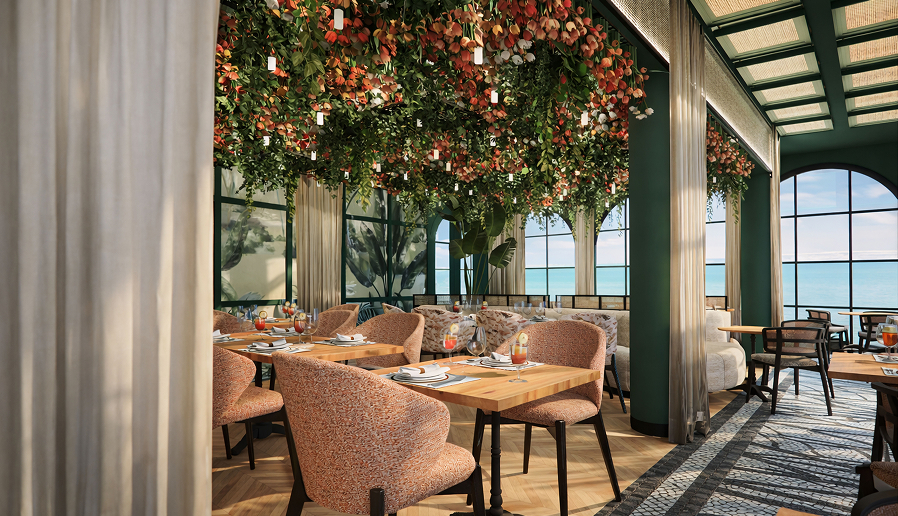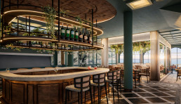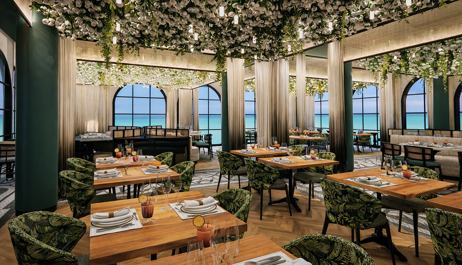 Recorre espacios amplios y cuidados donde interior y paisaje se leen como uno. Las columnatas se abren a los jardines; los patios conducen a las piscinas; las largas líneas de visión enmarcan el mar. A medida que cambia la luz, asciende a las terrazas de la azotea y elige entre seis restaurantes y bares. Quédate para la música y la conversación, o mantiene la noche en calma junto al agua.